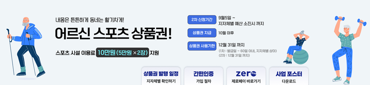 어르신 스포츠 상품권은 만 65세 이상 기초연금 수급 어르신에게 일정 금액의 체육시설 이용권(스포츠 바우처) 을 지급하는 정부·지자체 복지지원사업입니다. 1차는 마감되었고, 2차 지원 금액은 10만 원 상품권입니다. 지역 예산과 사업규모에 따라 다를 수 있으며, 대부분 모바일 상품권으로 제공됩니다.