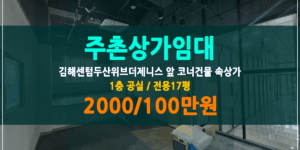 김해주촌선천지구 상가 임대 – 센텀두산 바로 앞 사거리 코너건물 속상가