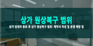 상가 임대차 계약 종료 시 분쟁을 예방하려면 상가 원상복구 범위를 명확히 알아두는 것이 중요합니다. 이 글에서는 상가 원상복구의 범위와 법적 기준 그리고 계약서 특약, 자연 마모 제외 사항까지 정확히 정리해 …