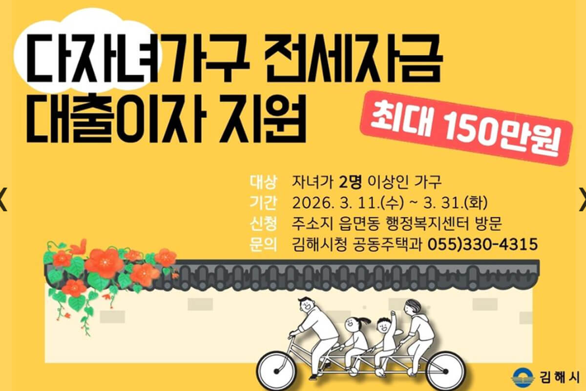 2026년 김해시 다자녀가구 전세자금 대출이자 지원사업